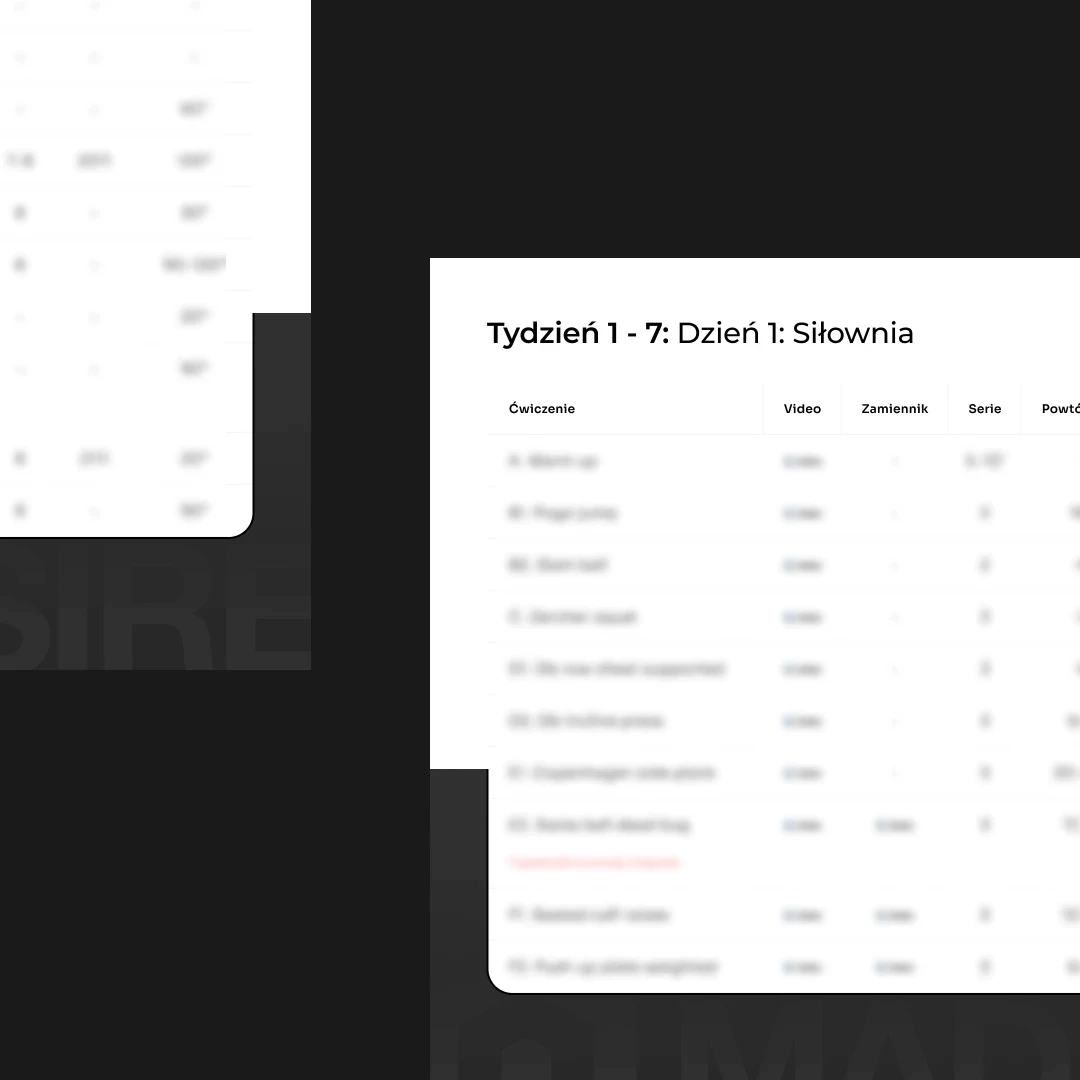 3 treningi biegowe + 2 siłowe tygodniowo z zaplanowaną regeneracją
